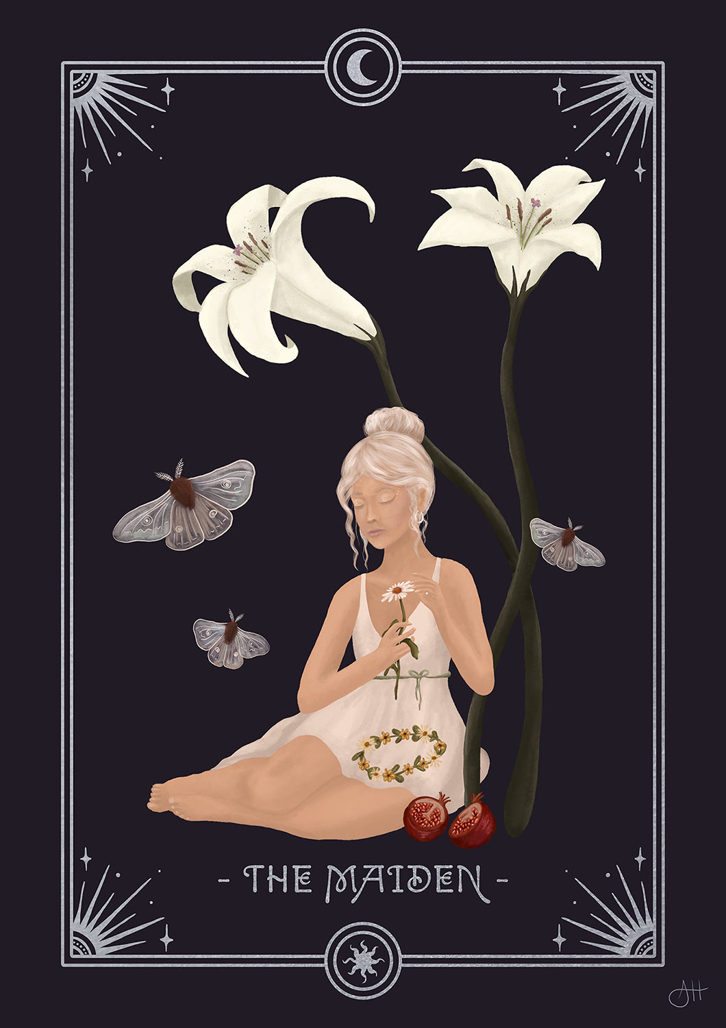 The Maiden emits a captivating sense of lightness, but underneath, she carries the the profound ability to transform darkness into light. She is a carrier of joy, full of openness and trust.