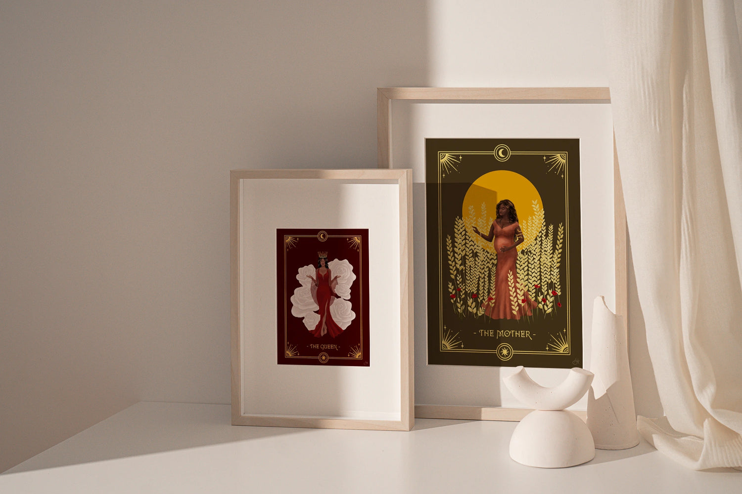 That single question led me deep down the rabbit hole. I started researching, devouring stories, symbols, and mythology. The more I read, the more I recognized pieces of myself – and pieces of every woman I knew – hidden in these timeless archetypes. Out of that curiosity (and mild obsession), my first series of images began to take shape.