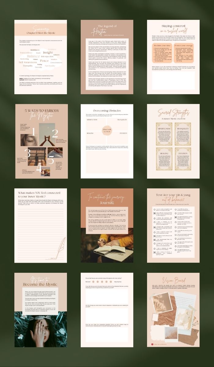 Each page was designed with love for you to enjoy. The contents are a mixture of journaling prompts, informative sections (archetype traits; psychological and spiritual concepts) and little exercises/rituals. (And with the Feminine Mastery Collection, you can be sure not to miss a thing!)